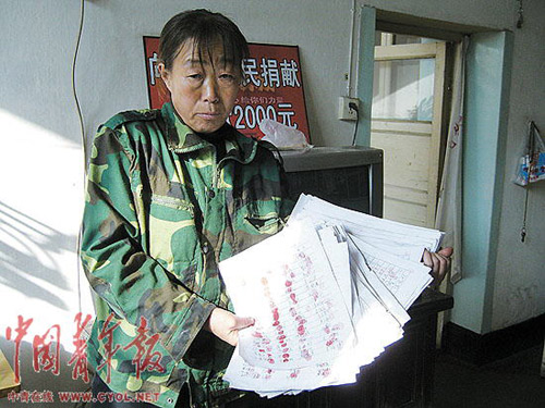 2008年,王侯娥兩次實名舉報李世明:一是李世明在舉國賑災(zāi)之際,花10萬元帶領(lǐng)村干部公費旅游;二是李世明包庇村民開辦土煉焦化廠。經(jīng)王侯娥舉報后,焦化廠被取締。但不久,她家被砸,大兒子被打傷,上中學的小女兒連續(xù)丟了3輛自行車。
