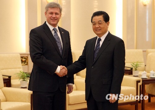 胡錦濤說(shuō),時(shí)隔20天,很高興和哈珀在北京再次見(jiàn)面。這是哈珀就任加拿大總理后第一次訪華,意義重大。相信此訪一定有助于增進(jìn)相互了解,擴(kuò)大務(wù)實(shí)合作,把中加友好合作關(guān)系提高到一個(gè)新的水平。