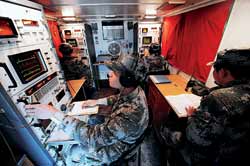 由濟(jì)南軍區(qū)組織的“鐵拳—2009·確山”實(shí)兵實(shí)彈檢驗(yàn)性演習(xí)11月中旬拉開帷幕,演習(xí)全程設(shè)置了復(fù)雜電磁環(huán)境,這是我軍首次在復(fù)雜電磁環(huán)境下對(duì)整建制機(jī)械化步兵師綜合作戰(zhàn)能力進(jìn)行檢驗(yàn),探索我軍信息化條件下的訓(xùn)法、戰(zhàn)法。在遠(yuǎn)程機(jī)動(dòng)過(guò)程中,記者深深感受到如影隨形、變幻莫測(cè)的電磁干擾。