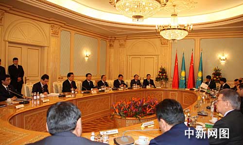 胡錦濤指出,近年來,中哈關(guān)系持續(xù)、快速、健康發(fā)展。雙方高層交往頻繁,政治互信不斷增強,經(jīng)貿(mào)、能源、安全、人文等領(lǐng)域合作取得豐碩成果。在聯(lián)合國、上海合作組織、亞信等多邊框架內(nèi)協(xié)作密切。在一系列涉及對方核心利益問題上相互堅定支持。
