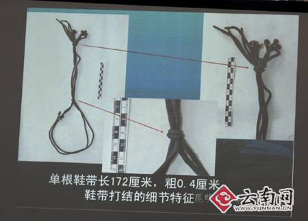 在通報(bào)會(huì)上,昆明市人民檢察院技術(shù)處副處長(zhǎng)梁泓說(shuō),經(jīng)辦案單位委托依法對(duì)尸體進(jìn)行系統(tǒng)解剖,并提取相關(guān)檢材進(jìn)行毒化等實(shí)驗(yàn)室檢查,鑒定其死亡原因?yàn)闄C(jī)械性窒息死亡,結(jié)合現(xiàn)場(chǎng)勘查、痕跡檢驗(yàn)可確定為自縊,縊死工具為鞋帶。