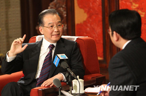 [溫家寶]今天接受新華社的采訪,感到非常高興。這次采訪主要是談過去一年我們國家如何應(yīng)對(duì)國際金融危機(jī)的。作為政府總理,應(yīng)該把真實(shí)情況向人民講清楚,這是我的義務(wù)。同時(shí)應(yīng)該給人民帶來信心和希望。