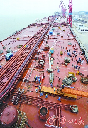來自廣州中海油運公司的船長馮萬遠說,新埔洋號輪是目前我國自行設計設備最先進、性能可靠、自動化程度最高的超大型油輪!靶缕已蟆碧柍晒ㄔ煲矊⒊蔀閺V州乃至整個華南地區(qū)造船業(yè)發(fā)展的里程碑。