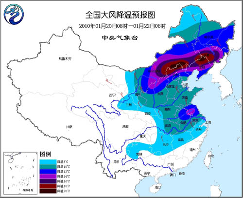 20日14時(shí)至22日14時(shí),西北地區(qū)東部、內(nèi)蒙古大部、華北、東北、黃淮、江淮、江漢、江南北部、貴州等地自西向東、自北向南將先后有4~6級(jí)、陣風(fēng)7級(jí)偏北風(fēng);上述地區(qū)的氣溫將下降8~12℃,其中,內(nèi)蒙古中東部、華北北部、東北地區(qū)中南部、江淮東部等地降溫幅度可達(dá)14~16℃,內(nèi)蒙古中部、東北地區(qū)東南部的部分地區(qū)降溫達(dá)18~20℃。