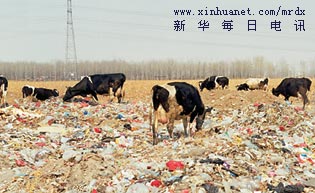 河邊是一片散發(fā)著臭味的垃圾場(chǎng),紅的、白的、黃的、灰的、黑的,各色垃圾堆滿了一地。附近養(yǎng)殖場(chǎng)的幾頭奶牛每天都踱步來(lái)到小河邊喝水,喝足水的奶牛習(xí)慣性地來(lái)到垃圾場(chǎng)上咬咬啃啃,搜尋著可吃的東西。