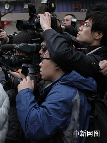 從早上7點(diǎn)開始,來自境內(nèi)外的各路記者便已經(jīng)在警戒頗嚴(yán)的重慶市第五中級(jí)人民法院門口守候,一些攝影愛好者也加入拍攝的隊(duì)伍,在很長一段時(shí)間里,在法庭外守候的記者多過圍觀的市民。記者看到,盡管法庭臨時(shí)增設(shè)加座,但也并非所有到場媒體能夠進(jìn)去旁聽,不少?zèng)]有拿到旁聽證的媒體記者仍然早早的來到法院門口,希望能采訪到現(xiàn)場新聞和更快的得到一些消息。