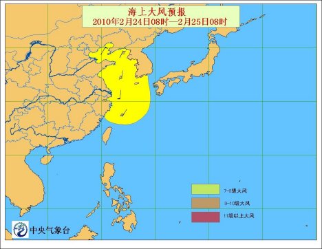 預(yù)計(jì),24日8時(shí)至25日8時(shí),受冷空氣影響,渤海將有7~8級、陣風(fēng)9級的東北風(fēng);黃海北部海域?qū)⒂?~7級偏南風(fēng)轉(zhuǎn)東北風(fēng)。受入海氣旋影響,黃海南部海域、東海北部海域?qū)⒂?~8級偏南風(fēng);黃海中部海域、東海南部海域?qū)⒂?~7級偏南或西南風(fēng)。渤海部分海域、黃海大部海域、東海北部海域、北部灣將有霧,能見度不足1公里。