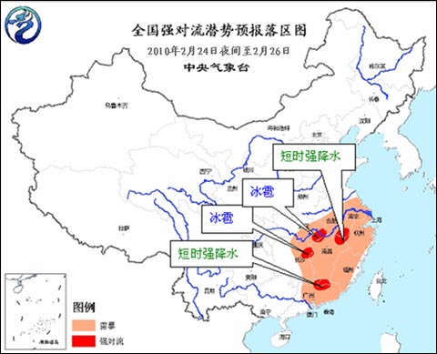 預(yù)計(jì)未來(lái)10天,南方地區(qū)降雨天氣較多,2月24日至26日,長(zhǎng)江中下游的部分地區(qū)將有大雨、局部地區(qū)有暴雨天氣,并伴有短時(shí)雷雨大風(fēng)等強(qiáng)對(duì)流天氣。