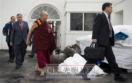 2月18日,會見結(jié)束后,達(dá)賴興高采烈地告訴守候在白宮的美國媒體:“奧巴馬總統(tǒng)非常支持我!钡D(zhuǎn)身后,自恃為“貴賓”的達(dá)賴卻被“主人”從白宮后門請出。