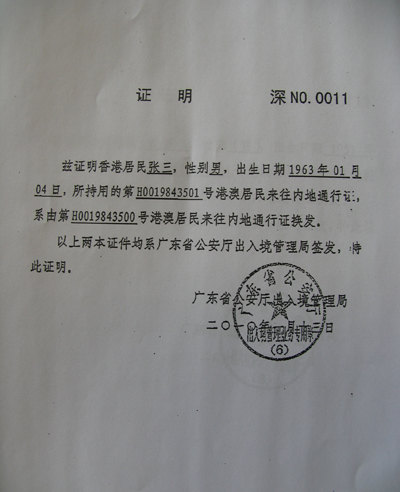 通行證換發(fā)證明:港澳居民因在內(nèi)地辦理相關業(yè)務需要,可分別向香港、澳門中國旅行社申請辦理通行證換發(fā)證明(式樣見附件2、3)。該證明由廣東省公安廳出入境管理局統(tǒng)一出具,證明新通行證根據(jù)原通行證換發(fā)。