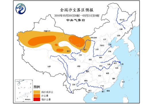 另據(jù)國家林業(yè)局荒漠化監(jiān)測中心監(jiān)測,受19日發(fā)生在中國西北地區(qū)東部、內(nèi)蒙古中西部沙塵天氣的影響,20日清晨,華北及京津地區(qū)出現(xiàn)浮塵天氣,局部地區(qū)強(qiáng)度較大。此后,沙塵天氣向南波及到河南、山東兩省。