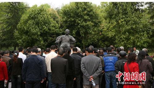 5日,李云華一家8口人專程從成都趕回廣安,在老家廣安區(qū)新橋鄉(xiāng)檀木村給已故老人掃墓后,又驅(qū)車來(lái)到小平故居紀(jì)念館,向鄧小平銅像敬獻(xiàn)鮮花,在故居內(nèi)頻頻合影留念。
