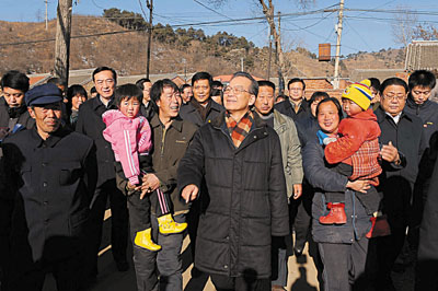 在世人驚艷中國(guó)速度、向往北京魅力的今天,地處光環(huán)邊緣的“盲區(qū)”、甚至被人遺忘的偏橋村,卻在共和國(guó)總理心中占據(jù)著特殊的位置:今年的全國(guó)兩會(huì)上,溫家寶在參加河北代表團(tuán)討論時(shí),在閉幕時(shí)的中外記者會(huì)上,兩次提及這個(gè)地方;2000年,2005年,2010年,溫家寶十年三訪偏橋村,并約定在退休后一定再來(lái)……