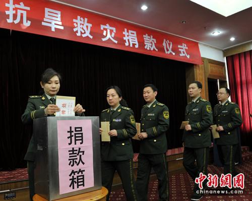 在今天舉行的現(xiàn)場捐贈儀式中,貴州消防總隊機(jī)關(guān)全體官兵現(xiàn)場捐款3.7萬余元。據(jù)統(tǒng)計,自抗旱以來,貴州各地消防官兵先后捐款捐物35萬余元,抗旱送水?dāng)?shù)56320噸,澆灌農(nóng)作物1000余畝,惠及群眾近300萬人。完