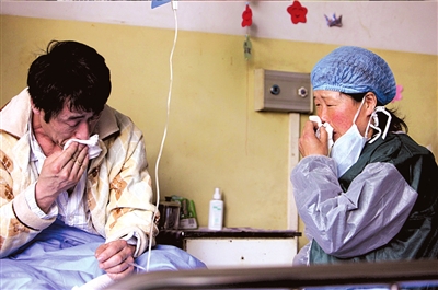 48歲的獲救工人魏合榮是湖北襄樊人,大家都叫他老魏。妻子有病在家,托母親和女兒來看望他。老魏流著淚,緊緊地抱住女兒,又將岳母的手緊緊攥在自己手中。這一幕感染了周圍的醫(yī)護人員,有人跟著悄悄抹眼淚。一位小護士對記者說,老魏是個特別樂觀的人,剛?cè)朐簳r,由于病人們的眼上都蒙著毛巾,醫(yī)生們見不到他們的表情,老魏潔白的牙齒和燦爛的笑容給他們留下了深刻的印象。