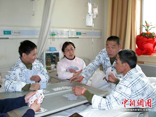 今天是王家?guī)X獲救礦工轉(zhuǎn)診太原的第八天,礦工們下床活動(dòng)的時(shí)間在逐漸增多。