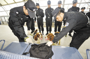 從昨天(23日)起,一隊(duì)隊(duì)全副武裝的特勤隊(duì)員開始在南京地鐵一號(hào)線車廂內(nèi)巡邏,他們個(gè)個(gè)身強(qiáng)體壯,受過專業(yè)訓(xùn)練。更值得一提的是,在這支隊(duì)伍中還有四只活潑可愛的“史賓格”犬。這是南京警方新成立的軌道交通乘警大隊(duì),從現(xiàn)在開始,這支乘警大隊(duì)將擔(dān)負(fù)起南京地鐵全線的巡邏執(zhí)勤任務(wù),保障市民的出行安全。