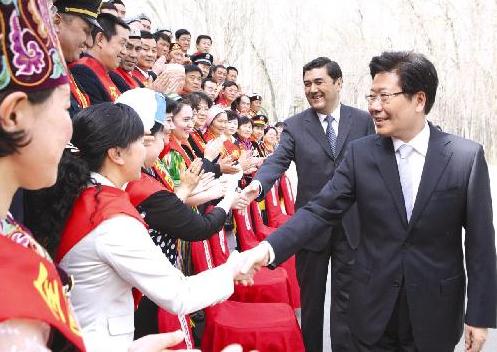 29日下午,在“五一”國際勞動節(jié)即將來臨之際,自治區(qū)黨委書記張春賢等領(lǐng)導(dǎo)與參加2010年全國勞動模范和先進(jìn)工作者表彰大會載譽(yù)歸來的我區(qū)全國勞動模范和先進(jìn)工作者舉行座談,共話新疆美好的明天。他強(qiáng)調(diào),要在全社會弘揚(yáng)勞模精神,凝聚廣大職工群眾的智慧和力量,共同建設(shè)美好新疆。