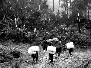 救災(zāi)階段,除鎮(zhèn)上、縣里下來的工作人員外,記者看見,整個災(zāi)區(qū)很少見20歲—50歲之間的青壯年男勞力。