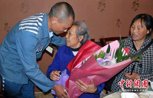劉元奎扶著母親,牽著女兒,走進(jìn)了飯店的餐廳里,與家人共進(jìn)午餐。8年前,他因犯罪被判17年有期徒刑,此后便再也沒(méi)有見到過(guò)母親。母親用一雙視力不佳布滿皺紋的眼睛不停地打量著兒子。老母親說(shuō):“兒。∥叶歼^(guò)80了,今天以后還能不能再見到你喲?”母親的話如針尖刺在了劉元奎的心頭!皨!我一定好好改造,我剛剛減了3年刑,兩年后就可以出來(lái)了,你老人家一定要等我!”劉元奎委托監(jiān)獄民警買來(lái)一束康乃馨,把鮮花送到了母親手中說(shuō):媽媽,祝你母親節(jié)快樂(lè)!