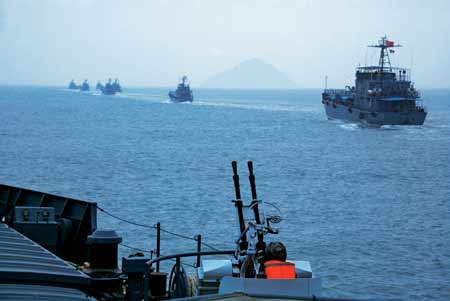 東海某海域,春寒料峭。一場復(fù)雜電磁環(huán)境下的海上聯(lián)合作戰(zhàn)演練激戰(zhàn)正酣。南京軍區(qū)某船艇大隊(duì)穿越萬頃波濤,按戰(zhàn)斗隊(duì)形依次搶灘。與以往不同的是,大隊(duì)長方榮松不再是保障部隊(duì)演練的“配角”,而是船艇編隊(duì)的海上聯(lián)合指揮員。