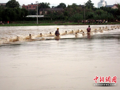 雖然被困人員距救援人員的岸邊只有十多米,但石橋至岸邊的小路早已被沖瀉而下的急流隔開(kāi),消防戰(zhàn)士跳入齊胸深的水中,幾次欲通過(guò)石橋接近被困者,都被強(qiáng)大的水流沖到一邊,根本無(wú)法到達(dá)近在眼前的石橋救人,而且整個(gè)橋面及欄桿都在水面下,一個(gè)不慎自身都會(huì)存在危險(xiǎn)。