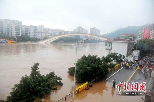 中新網(wǎng)重慶6月19日電 (銀雪 付毅)記者19日從重慶綦江縣水務(wù)局獲悉,19日14時許,當(dāng)?shù)佤牒铀簧蠞q至220.5米,17時左右綦河水位達(dá)到223米,超過警戒水位2.5米,超過保證水位(222.5米)0.5米。