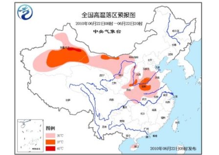 預(yù)計(jì)今天白天,內(nèi)蒙古中西部、寧夏北部、甘肅西部、陜西北部及關(guān)中地區(qū)、山西中南部、河北南部、山東中西部、安徽西北部、河南大部、湖北西北部以及海南大部等地將有35~37℃、局地38℃的高溫天氣;新疆吐魯番、哈密地區(qū)及南疆盆地將有35℃以上的高溫天氣,其中,吐魯番盆地最高氣溫可達(dá)42~44℃。