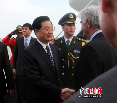 在機(jī)場發(fā)表的書面講話中,胡錦濤首先表示,很高興再次來到美麗富饒的“楓葉之國”加拿大進(jìn)行國事訪問。