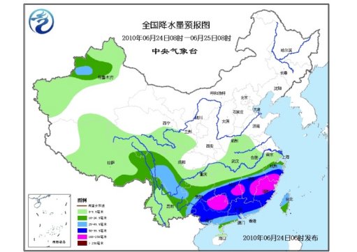 中新網(wǎng)6月24日電 據(jù)中央氣象臺網(wǎng)站消息,未來三天,青藏高原及其以東大部地區(qū)多降雨天氣,其中,貴州南部、江南中南部、華南大部等地有大到暴雨,局地有大暴雨;西藏東部、云南北部和東部、川西高原南部等地有大雨;上述部分地區(qū)并伴有短時雷雨大風或冰雹等強對流天氣。受高空槽東移影響,新疆北部多降雨,其中,新疆天山的部分地區(qū)有大雨。