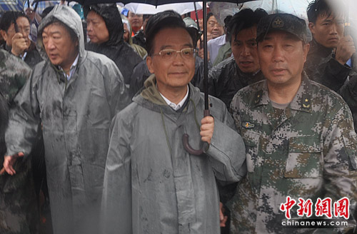 當(dāng)日上午,溫家寶冒雨深入重災(zāi)區(qū)撫州羅針鎮(zhèn),察看汛情、災(zāi)情,看望受災(zāi)群眾,慰問奮戰(zhàn)在抗洪搶險一線的解放軍、武警、公安消防官兵。