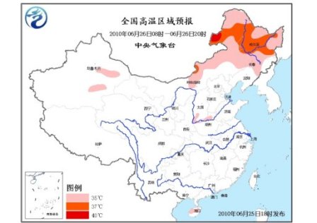 中新網(wǎng)6月25日電 中央氣象臺今日18時繼續(xù)發(fā)布高溫藍色預警:預計明天白天,內(nèi)蒙古中東部、黑龍江、吉林大部、山西西南部、河南北部、海南中北部等地有35~37℃的高溫天氣,其中,內(nèi)蒙古東北部局地最高氣溫可達38℃以上。