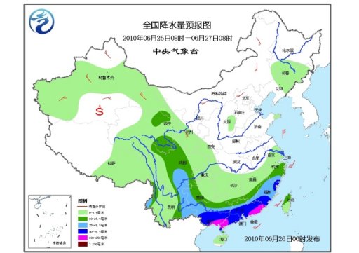 中新網(wǎng)6月26日電 中央氣象臺(tái)26日6時(shí)發(fā)布短期天氣預(yù)報(bào)顯示,未來三天,青藏高原及其以東大部地區(qū)多降雨天氣,其中,浙江南部、江西南部、福建大部、廣西中南部、廣東大部等地有大雨或暴雨,局地有大暴雨;云南西北部和東部、貴州西部和南部、四川盆地南部、黑龍江東部等地有大雨;上述部分地區(qū)并伴有短時(shí)雷雨大風(fēng)或冰雹等強(qiáng)對(duì)流天氣。