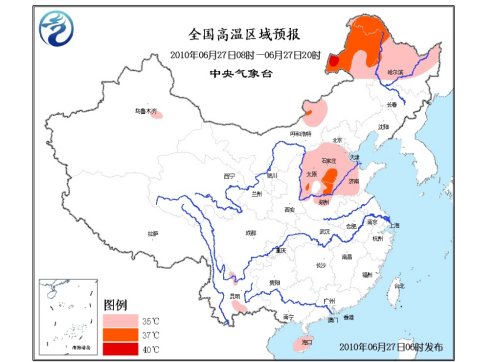中新網(wǎng)6月27日電 中央氣象臺6月27日06時繼續(xù)發(fā)布高溫藍(lán)色預(yù)警:預(yù)計,今天白天,內(nèi)蒙古東北部和中部的部分地區(qū)、黑龍江大部、山西大部、河北中南部、京津南部、河南北部、山東中西部、海南大部等地有35~37℃的高溫天氣,其中,內(nèi)蒙古東北部、黑龍江西北部、河北南部等地局部最高氣溫可達(dá)38℃以上。