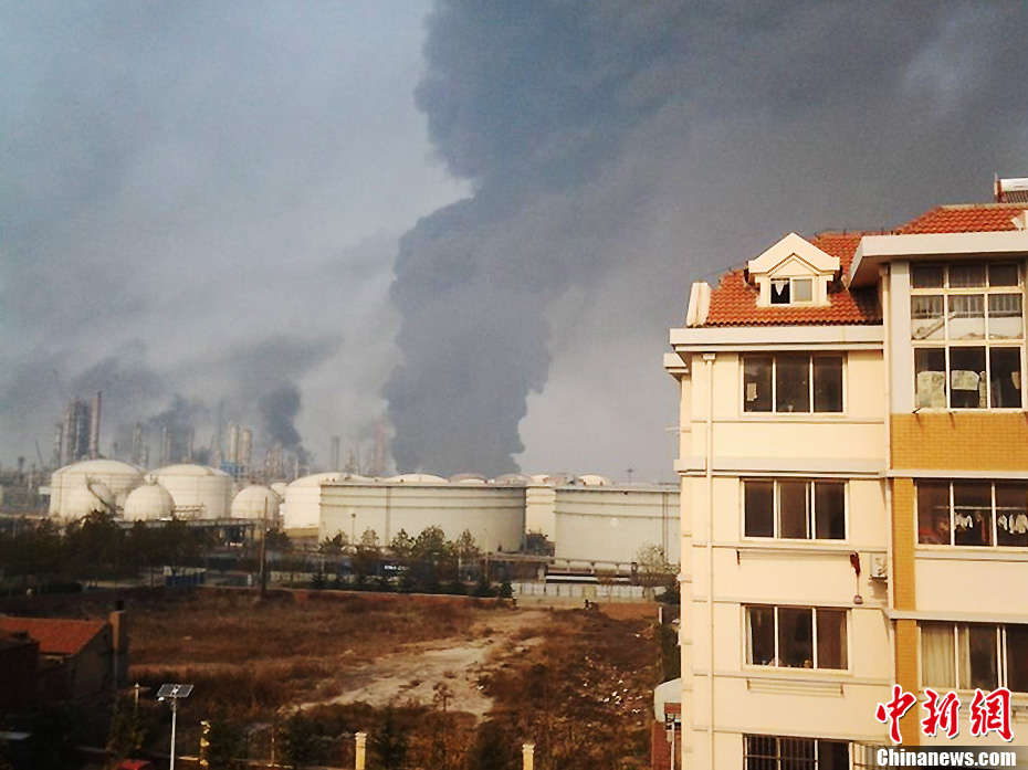 青島中石化輸油管線(xiàn)破裂起火 濃煙滾滾遮天蔽日