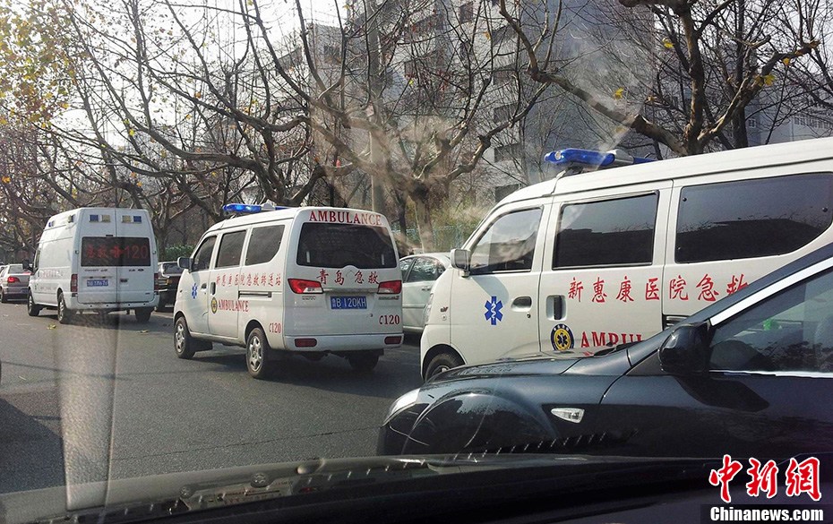 青島輸油管線(xiàn)破裂致多人死傷 救護(hù)車(chē)趕赴現(xiàn)場(chǎng)