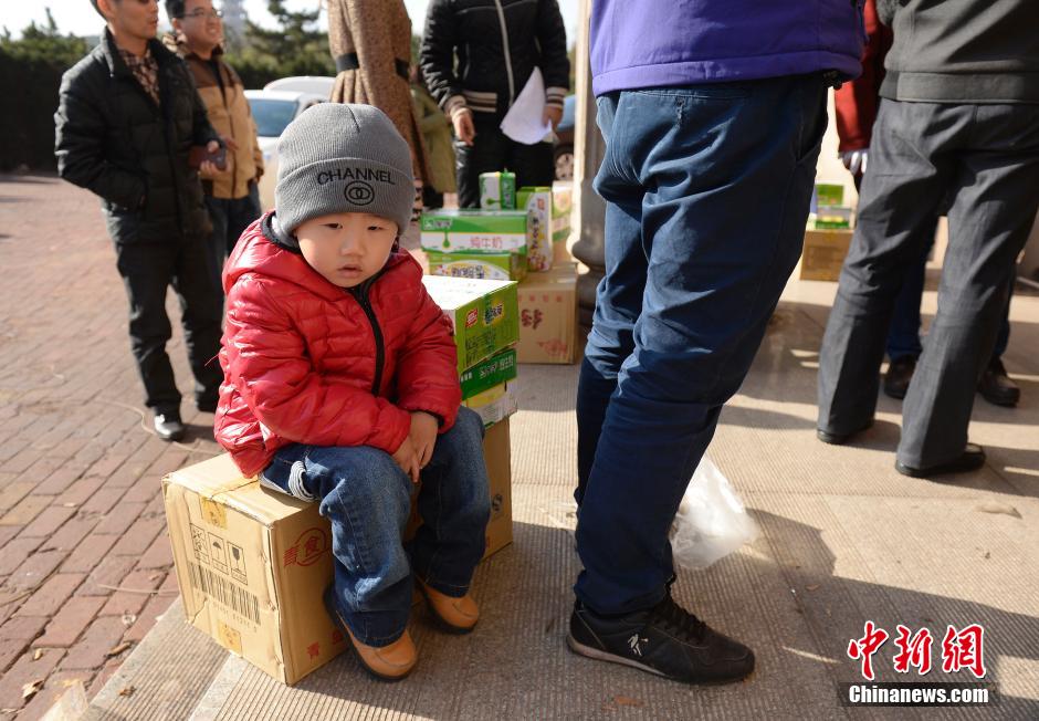 青島爆燃事故中心區(qū)居民領(lǐng)取救援物資