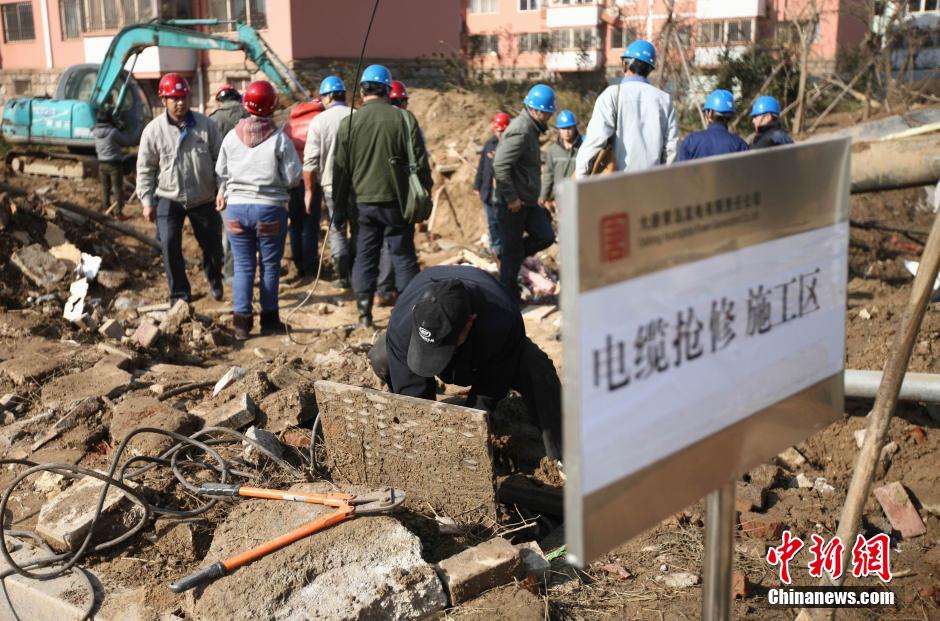 青島爆燃事故現(xiàn)場(chǎng) 緊張搶修電力設(shè)施