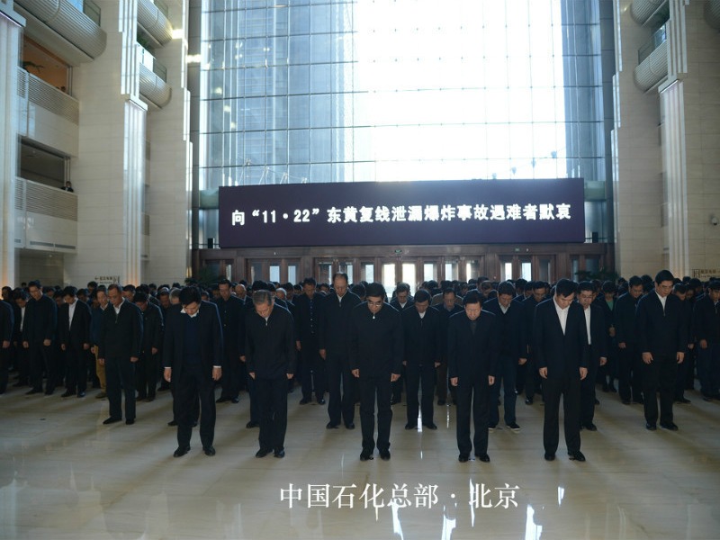 中石化百萬(wàn)員工哀悼青島爆燃事故遇難者