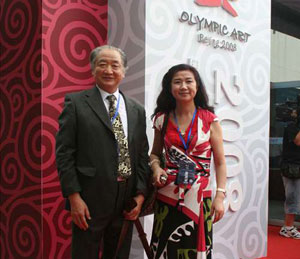 蔡布谷在2008年北京奧運(yùn)會(huì)奧林匹克美術(shù)大會(huì)留影。(圖片來源:大公報(bào))