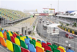 現(xiàn)時賽事控制中心、維修中心、水塘大看臺及葡京彎搭建的賽車看臺已準(zhǔn)備就緒,所有看臺均設(shè)有座位,車迷無須席地而坐。位于控制中心對面的大看臺及葡京彎看臺設(shè)有帳篷,可遮風(fēng)擋雨。但近日有強烈季候風(fēng)吹襲,為安全起見,帳篷須押后設(shè)置。兩個主要看臺座位比往年有所增加,相信本屆可吸引更多觀眾入場,氣氛更熱鬧。