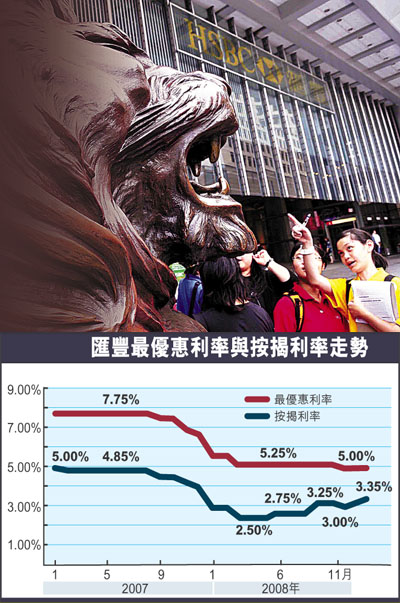 工銀亞洲董事暨副總經(jīng)理黃遠輝表示,估計匯豐此次行動,主要想追回早前下調最優(yōu)惠利率25點子的息差。他指,業(yè)界對經(jīng)濟展望仍不樂觀,全球潛在的通縮風險大增,加上不排除美國會于本月16日再次減息,因此料以上各種因素,會對個別銀行的按息調整構成一定壓力。他認為,由于整體投資市場于金融海嘯打擊下崩潰,按揭業(yè)務仍是各家必爭之地,料即使銀行上調按息,幅度也不會太大。