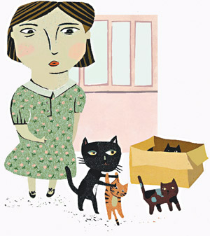 我終究還是熬不過好奇,第四天,我確定母貓從后陽臺(tái)外出溜達(dá),立即關(guān)上書房門,小心翼翼的轉(zhuǎn)過紙箱,打亮手電筒往里瞧,兩只黑忽忽的小家伙正在蠕動(dòng),都還沒睜眼。我在一分鐘之內(nèi),馬上將它恢復(fù)原狀,帶著偷窺的快感離開。