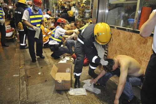 事發(fā)昨晚七時(shí)四十五分左右,當(dāng)時(shí)正下著大雨,有人在上址以兩個(gè)汽水膠樽盛鏹水掟落街,在一名內(nèi)地游客身旁跌落地,撞擊濺出的液體冒出白煙,在現(xiàn)場(chǎng)數(shù)十名游人誤為有人扔垃圾,惟隨即感到皮膚劇痛,才知“中招”,受驚紛紛狂叫,四散跑入附近的店鋪求助。職員實(shí)時(shí)扶傷者到安全地方,同時(shí)取清水讓各人清洗傷口。多輛救護(hù)車趕往救援,將傷者分送醫(yī)院。警方則動(dòng)員逾二百人進(jìn)行調(diào)查,現(xiàn)場(chǎng)通宵未能解封。
