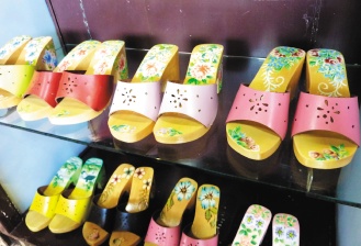 宜蘭縣蘇澳鎮(zhèn)白米木屐村把傳統(tǒng)的木屐改良,不但木屐顏色變亮麗,彩繪各種美麗圖案,穿起來又涼爽,夏天到了,很多女孩子特別喜歡,“大家都將木屐當(dāng)做美麗的涼鞋!”木屐村導(dǎo)覽組組長蕭玉珠說。