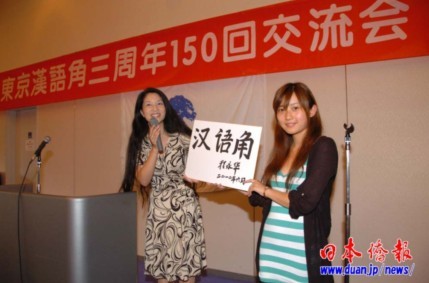 交流會(huì)上展示了中國駐日大使程永華揮毫題寫的“漢語角”3個(gè)大字,顯示了中國駐日大使館對(duì)中日民間交流的重視和對(duì)舉辦漢語角的支持。