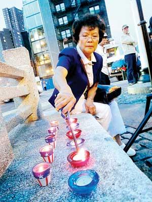 11日晚間7時,在莊嚴(yán)的國歌聲中,燭光晚會在華埠且林士果舉行。應(yīng)邀出席的紐約市華裔主計長劉醇逸,市議員陳倩雯、顧雅明,中華公所代主席徐澄宇等在發(fā)言中表示,“911”是人類的一次災(zāi)難深重的浩劫,給民主、自由、祥和、繁榮的美國帶來極大的負(fù)面影響,特別是鄰近世貿(mào)廢墟的華人社區(qū),在精神、經(jīng)濟上更是遭受了前所未有的打擊,因此紀(jì)念“911”對華埠來說意義重大,大家不要忘記死難者,也不要忘記華埠至今仍然未能全面復(fù)蘇。參加活動的人士均希望這樣的悲劇不要再次發(fā)生,同時也希望國民一起努力,盡快走出目前的經(jīng)濟困境,一起建設(shè)這個美好的國家。