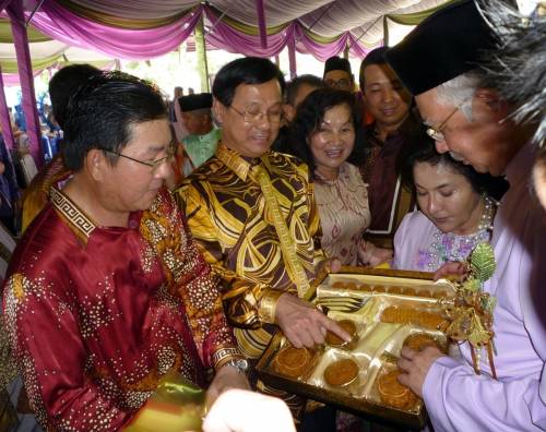 中新網(wǎng)9月19日電 據(jù)馬來西亞《星洲日報》報道,馬來西亞首相納吉18日回到選區(qū)北根舉辦開齋節(jié)門戶開放活動,華總會長方天興率領(lǐng)彭亨華人社團聯(lián)合會及彭亨中華工商會眾領(lǐng)袖一起出席,并贈送月餅予首相,象征月圓、人圓、全民團結(jié)!