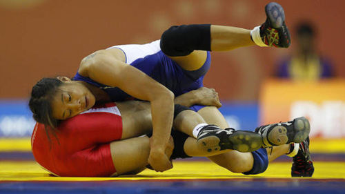 來(lái)自哈澤爾頓(Hazelton)的華裔優(yōu)秀選手黃嘉露(Carol Huynh)在女子48公斤級(jí)別自由式摔跤項(xiàng)目上,擊敗占盡地利人和優(yōu)勢(shì)的印度選手德維(Nirmala Devi),獲得金牌。