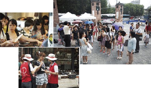 一行人抵達景福宮的時間是下午2時45分,比計劃晚了40分鐘。原因是部分游客在仁寺洞購物拖延了時間。導游張某開始對景福宮進行介紹,但幾乎沒有人聽。張某說:“來韓國旅游的游客大都是大學畢業(yè)的二、三十歲女性,在中國引領(lǐng)消費文化的白領(lǐng)女性。他們比起文化遺產(chǎn),更關(guān)心購物。”
